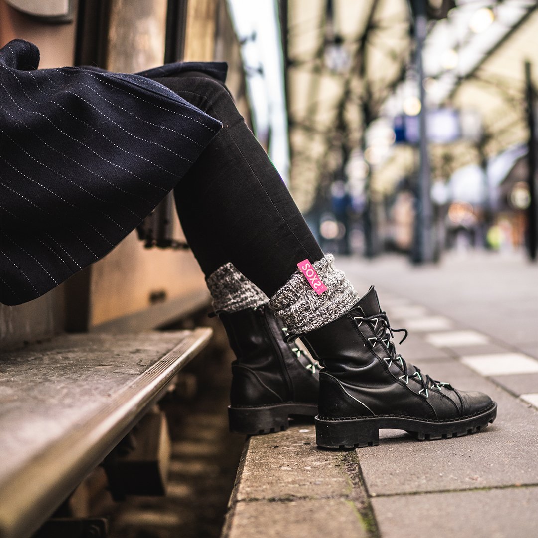 Diese grauen Wollkniestrümpfe für Damen sind herrlich warm, bequem und so süß wie Bubblegum! Klassische Kniesocken aus Schafwolle in einem modernen Look mit einem trendigen Touch in Rosa. Diese Wollsocken für Damen reichen bis zum Knie und halten Deine Beine und Füße im Winter angenehm warm. Du kannst diese Kniestrümpfe aus Wolle bei einem Spaziergang im Freien tragen, damit gemütlich zu Hause auf der Couch chillen und auch bei allen anderen Aktivitäten anziehen. Die Wintersocken von SOXS halten Deine Füße zu jeder Tageszeit warm!
